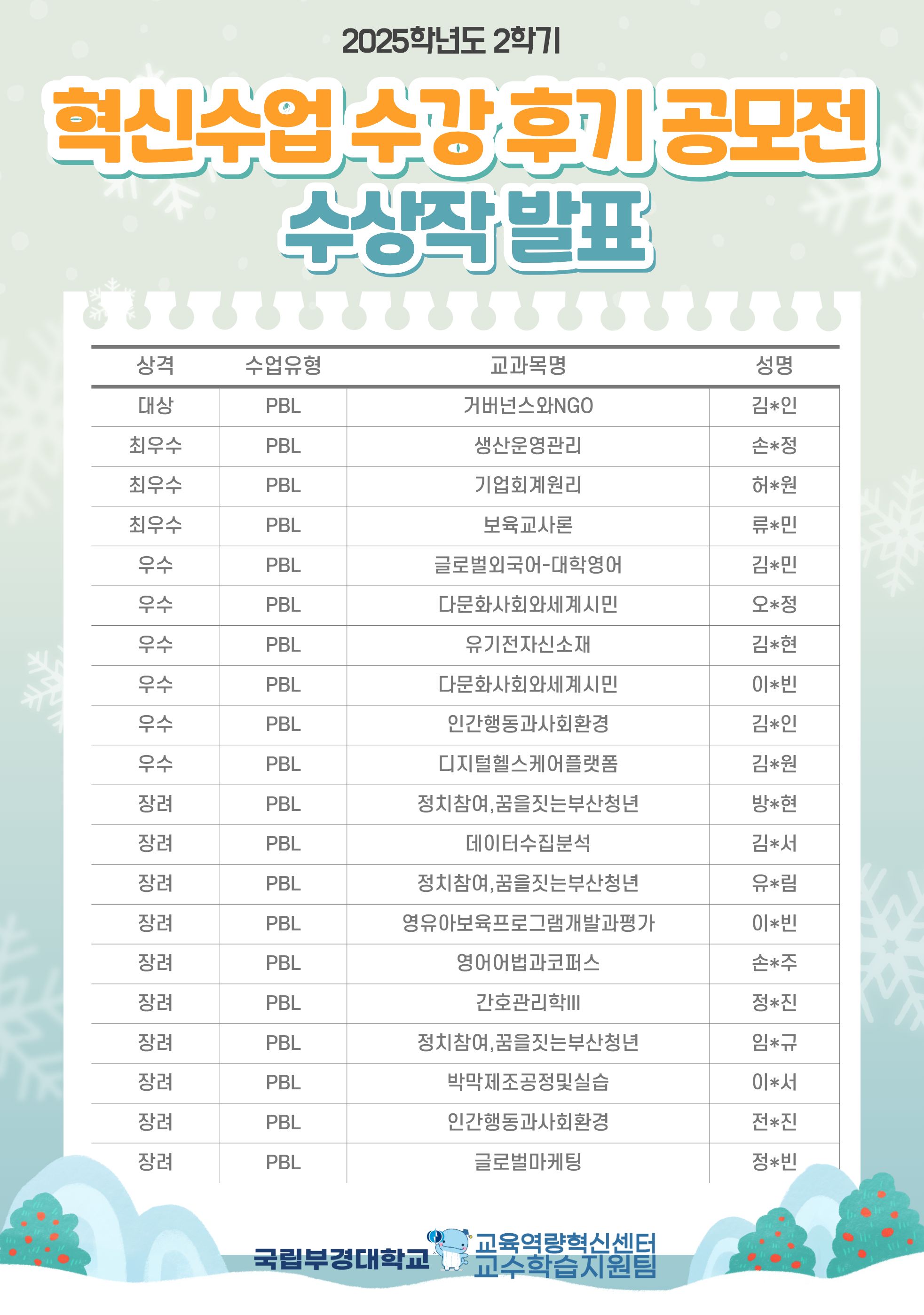 2025-2학기 혁신수업 수강 후기 공모전 우수작을 아래와 같이 공유합니다.